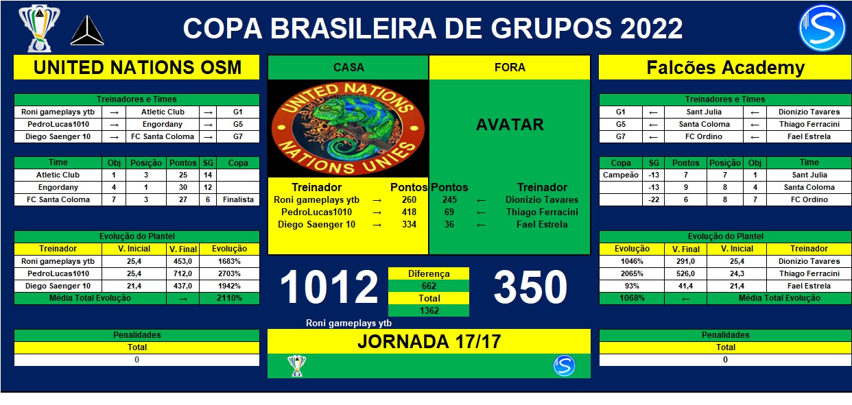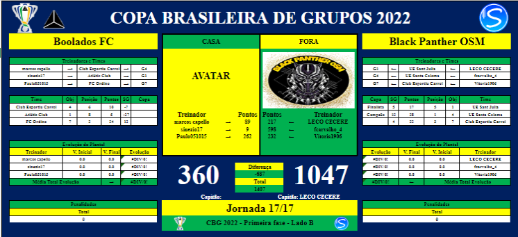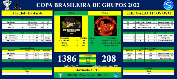 Com isso, chegamos ao Fim da PRIMEIRA FASE da CBG 2022. Dessa maneira, o chaveamento para a próxima fase (SEMI FINAL) será de acordo com o que foi proposto inicialmente, sendo disposto da seguinte forma:
