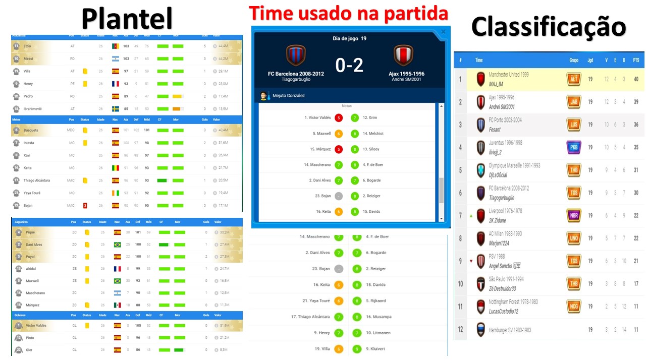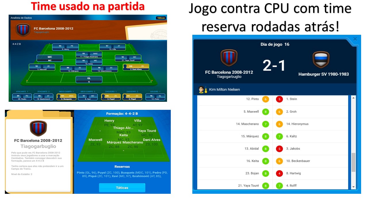 Citação de MAJ_BA em 28 de abril de 2024, 18:58Parabenizo a organização pela seriedade, postura e pelo esclarecimento dos fatos ocorridos na Categoria Sênior. Muito triste ter pessoas com tais postura diante de uma final, de fato, é preciso ser rígido para que isso não exista em outras competições, fica lição tanto pros membros do grupo dos envolvidos como para toda comunidade para que tais atitudes não venha se repetir. Aproveito para solicitar analise dessa mesma comissão, para uma situação muito semelhante que ocorreu na rodada de ontem na Categoria Sub700.Segue os prints em anexo da partida entre o Treinador Tiago x André, aonde o treinador Tiago jogou em casa com praticamente o time todo reserva, sendo que a poucas rodada atrás, o treinador Tiago jogou contra um time sem técnico (cpu - treinador que se demitiu da liga) e ele foi com time reserva, na partida de ontem, o time dele não estava cansado e não tem nada que justifique essa atitude diante de uma partida importante para quem está brigando na parte de cima da tabela. Me coloco á disposição da organização caso necessite de mais alguma imagem ou informação.Citação de Renato Amorim em 27 de abril de 2024, 12:42Atenção: