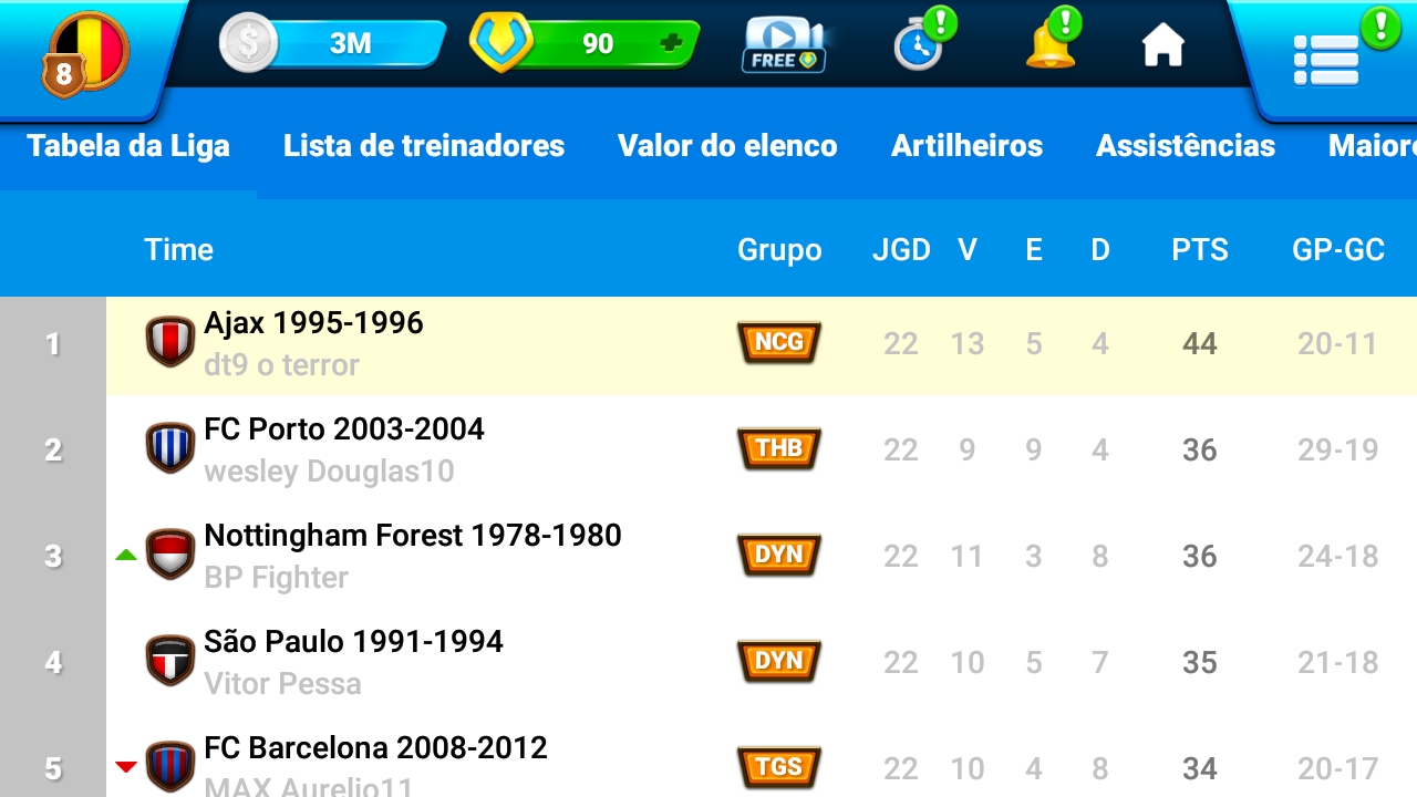Também o treinador dt9 o terror perderá os pontos do jogo de ontem contra ele e também no primeiro turno em caso de empate ou vitória.