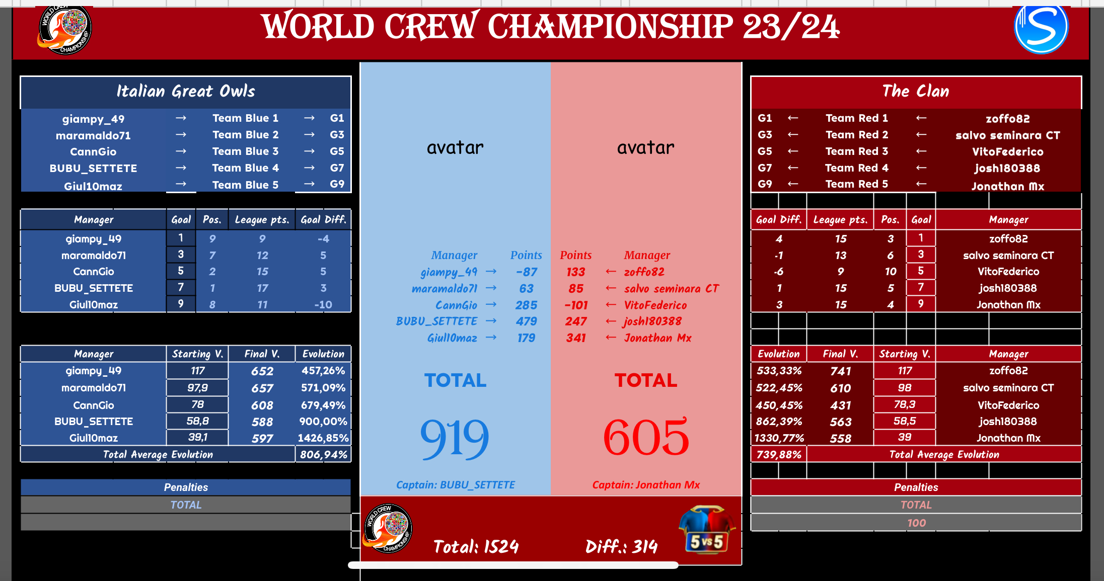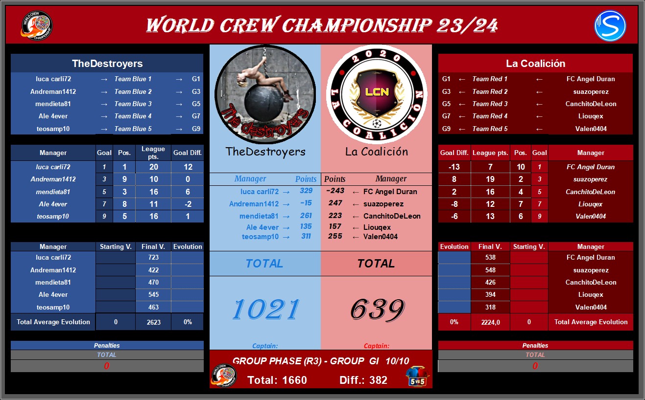 FINAL RESULT OF THE BATTLES