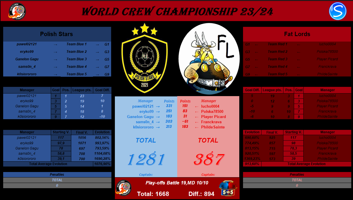 FINAL RESULT OF THE BATTLES