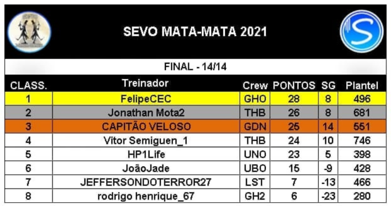 Na primeira edição do Mata Mata da Sevo tivemos, nosso representante, Felipe CEC como campeão. Parabéns e que venham mais títulos!