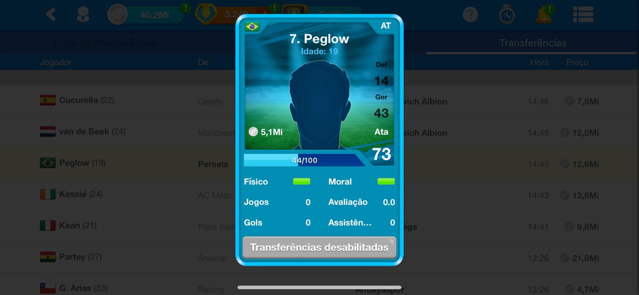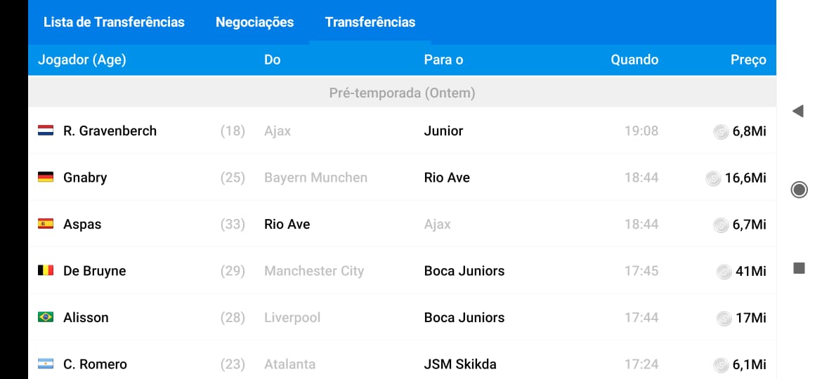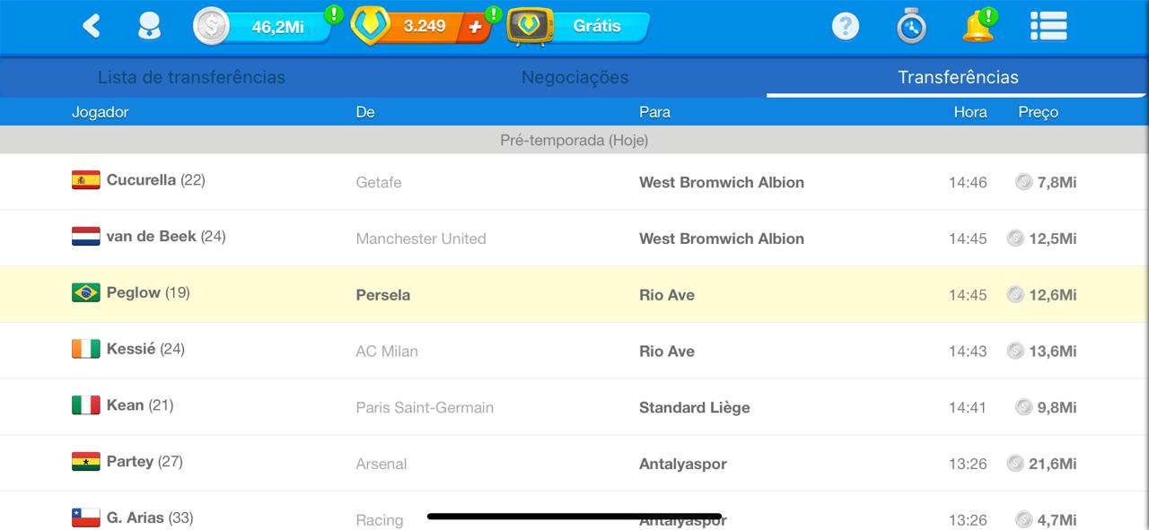A compra de jogadores da lista de transferência é permitida só após a primeira simulação de vendas da liga. Comprar jogadores da lista de transferência antes da simulação de vendas é considerado penalização -50 pontos por cada jogador comprado.