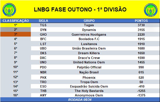 Boas galera, saiu a primeira parcial da LIGA NACIONAL BRASILEIRA DE GRUPOS - LNBG Fase Outono 2021. Logo abaixo estão as penalidades cometidas até a data de 06/05/2021.