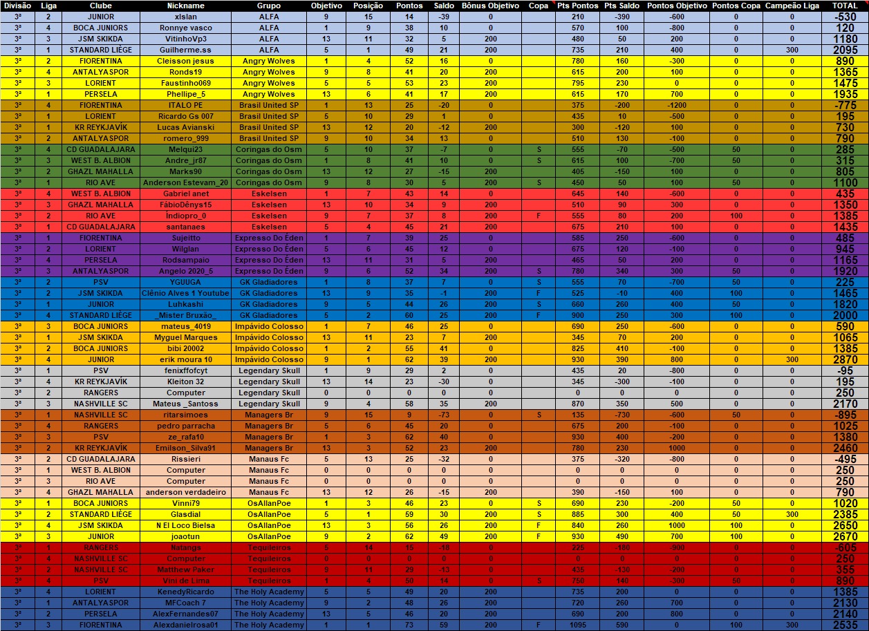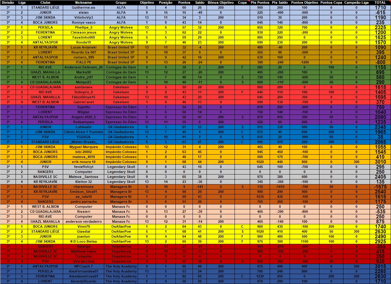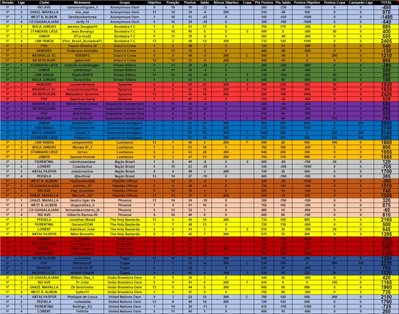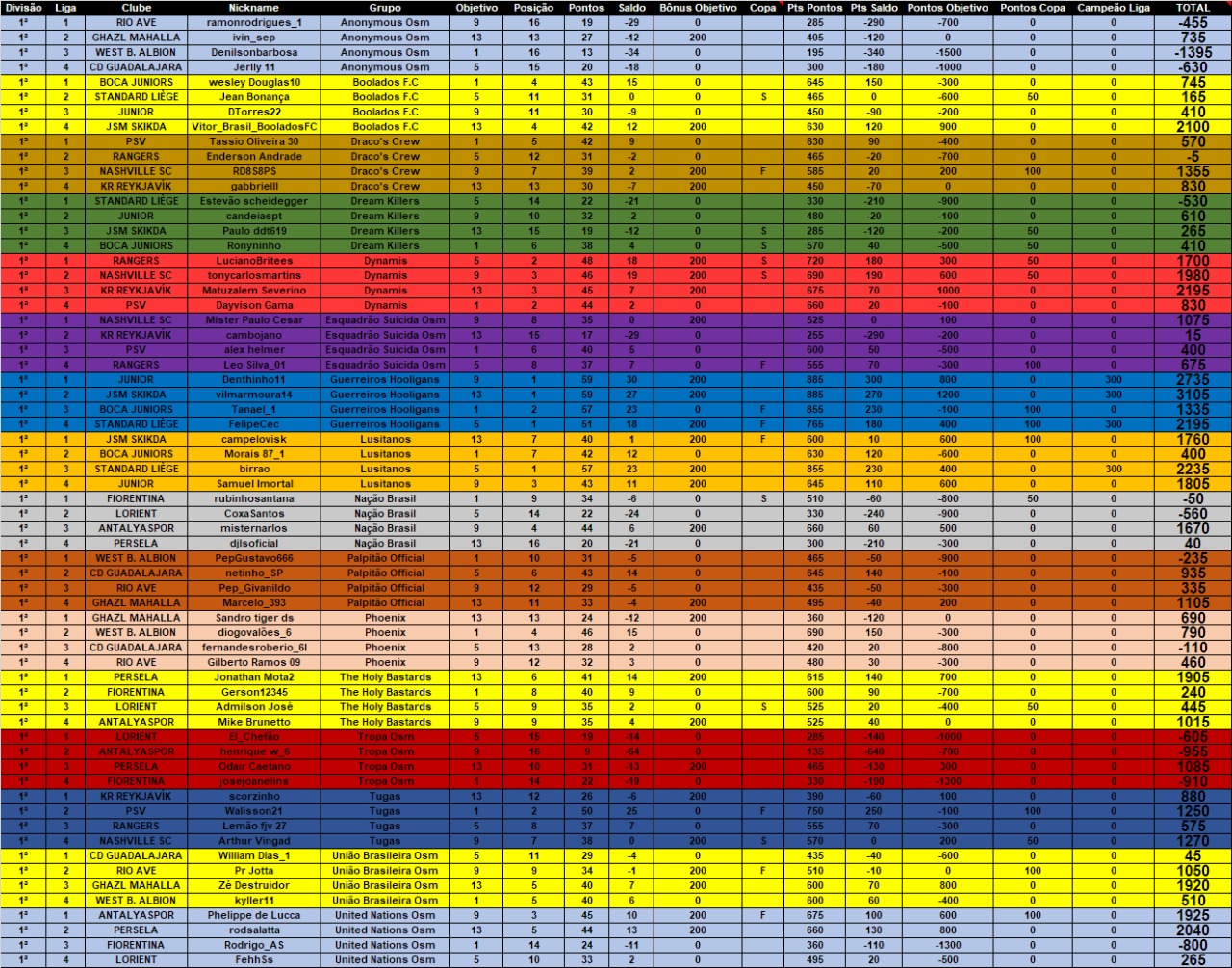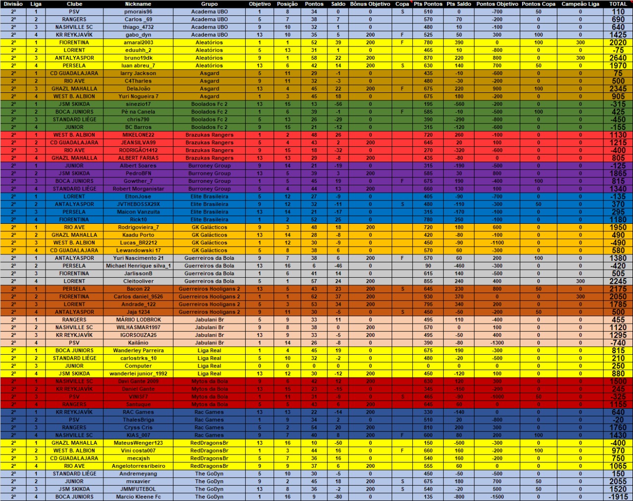 Citação de GuilhermeOliveira12 em 30 de maio de 2021, 23:03Saiu mais uma parcial da LIGA NACIONAL BRASILEIRA DE GRUPOS - LNBG Fase Outono 2021. Logo abaixo estão as pontuações individuais e em seguida as penalidades cometidas até a data de 30/05/2021.