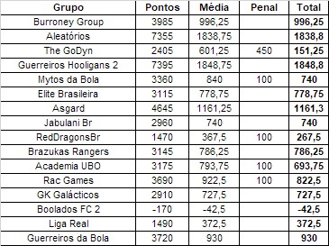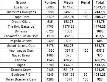 - 2 Em caso de o grupo tiver alguma penalidade, esse valor tem que ser diminuído no resultado final do Grupo.