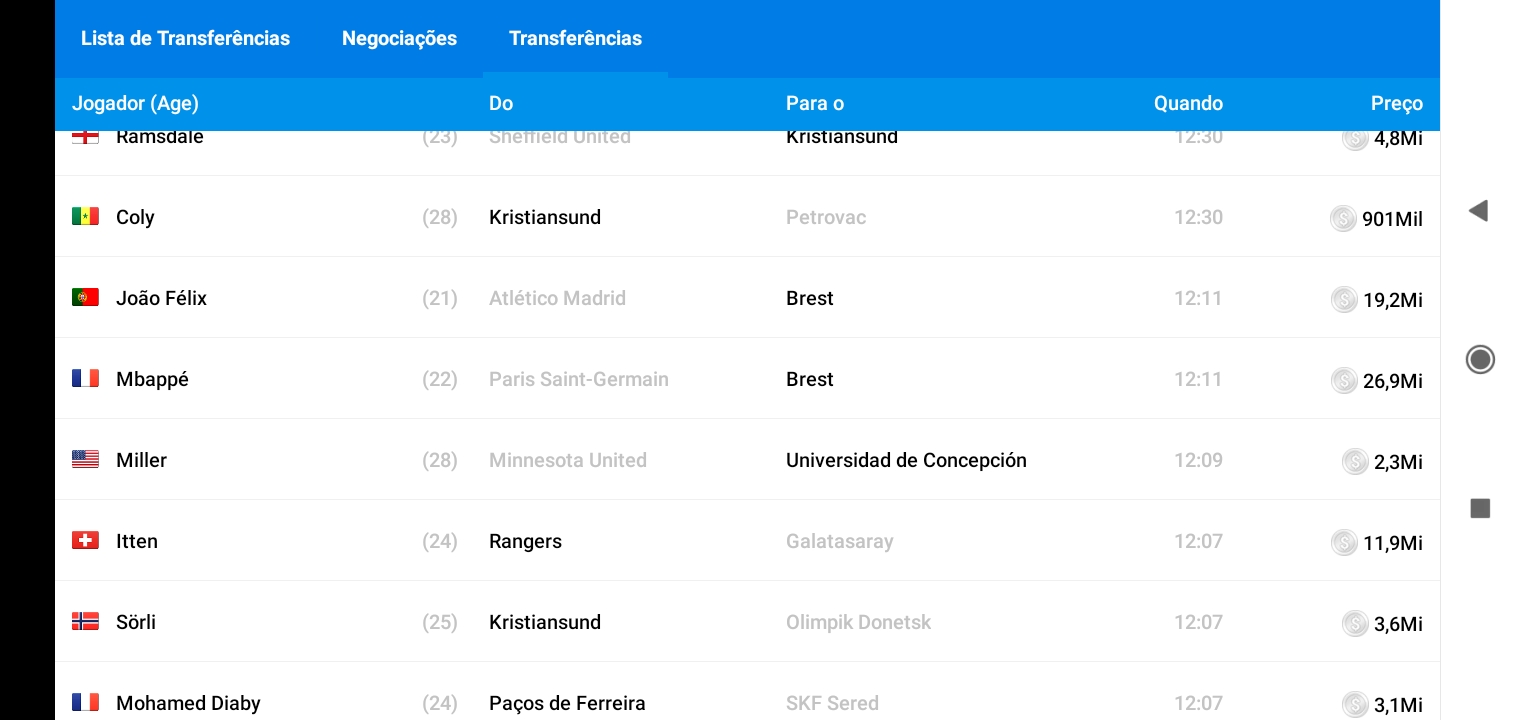 7.12. Venda de jogadores a equipas da mesma liga controladas pelo CPU: 200 pontos por jogador